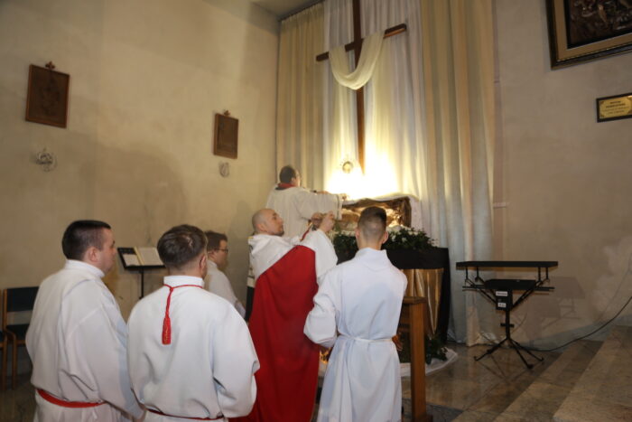 Liturgii Męki Pańskiej przewodniczył Ksiądz wikariusz Łukasz. Licznie zgromadzeni uczestnicy Liturgii zgodnie z tradycją oddali cześć Krzyżowi Jezusa. Tego wieczoru krzyż Jezusa stanął w centralnym miejscu kościoła, tuż przed ołtarzem i pozstanie tam aż do Liturgii Wigilii Paschalnej.