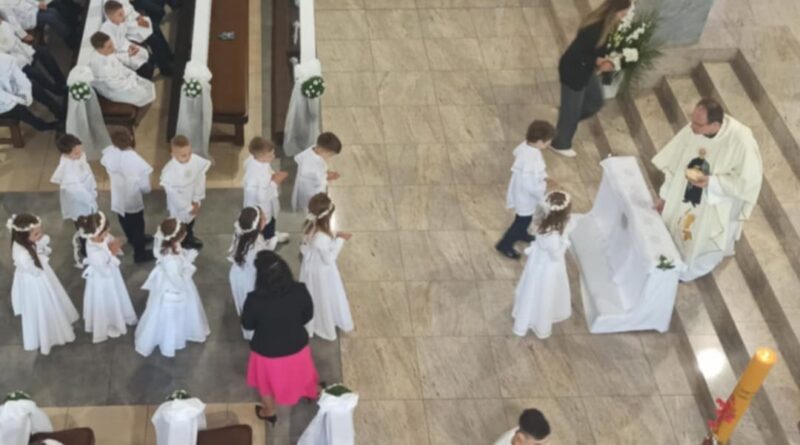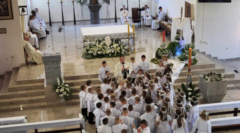 W niedzielę, 11 maja 2025 roku, w Parafii św. Maksymiliana Marii Kolbego odbyła się uroczystość I Komunii Świętej. Był to wyjątkowy i długo wyczekiwany dzień dla 67 dzieci, które po raz pierwszy przyjęły Pana Jezusa do swojego serca. Był to moment głębokiego przeżycia duchowego – zarówno dla samych dzieci, jak i ich rodzin oraz całej wspólnoty parafialnej.