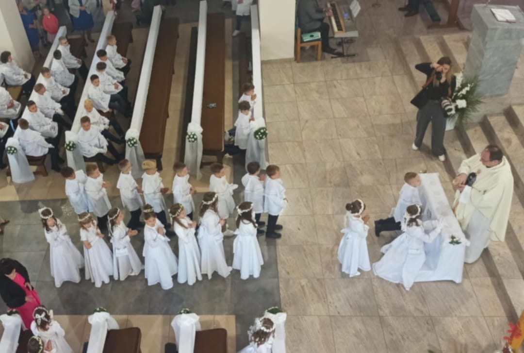 W niedzielę, 11 maja 2025 roku, w Parafii św. Maksymiliana Marii Kolbego odbyła się uroczystość I Komunii Świętej. Był to wyjątkowy i długo wyczekiwany dzień dla 67 dzieci, które po raz pierwszy przyjęły Pana Jezusa do swojego serca. Był to moment głębokiego przeżycia duchowego – zarówno dla samych dzieci, jak i ich rodzin oraz całej wspólnoty parafialnej.