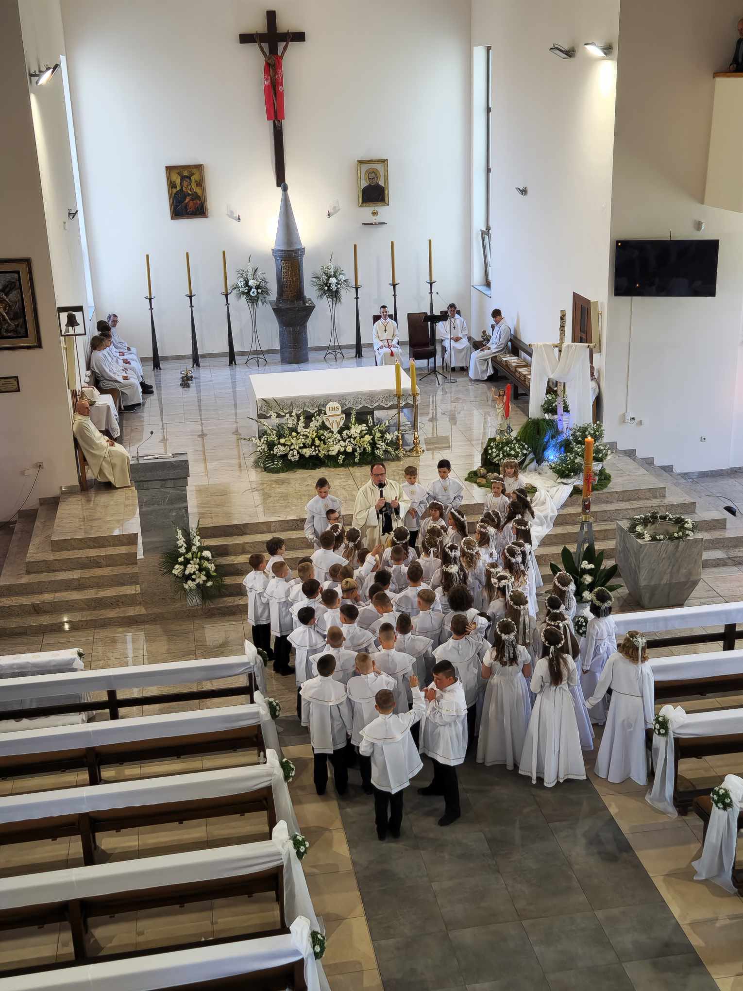 Liturgia miała bardzo uroczysty charakter. Dzieci w białych albach z przejęciem i skupieniem uczestniczyły we Mszy Świętej. W sposób szczególny wyróżnił się ich śpiew – donośny, pełen dziecięcej radości i szczerości. Pięknie wyśpiewane pieśni ubogaciły całą uroczystość i poruszyły serca wszystkich zgromadzonych.