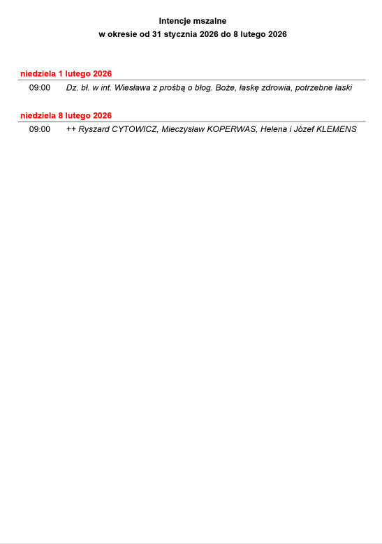 Intencje w tym tygodniu – Kaplica
